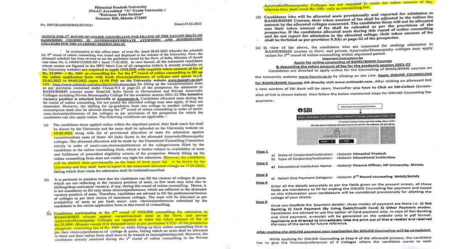 Schedule for 2nd round of online counselling for admission to BAMS/BHMS Courses for the academic session 2021-22